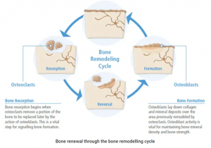 A common misconception about your bones is that they’re dead. (Not true!) Your bones are living tissue that’s continually remodeled in phases—resorption and formation—to stay healthy and strong. In resorption, your body breaks down old and damaged bone with cells called osteoclasts; during formation, it does the opposite: Cells known as osteoblasts build new bone. This process of remodeling is incredibly important and any imbalances, like cells being broken down too fast, can increase the risk for certain health conditions related to bone loss.
