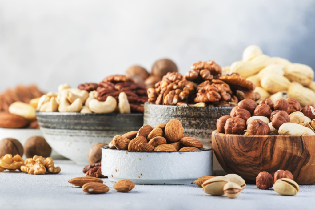 - Nuts and Seeds: Rich in in the antioxidant Vitamin E, which helps combat oxidative damage and inflammation, and may protect against skin damage and visible signs of aging such as fine lines and sun spots.