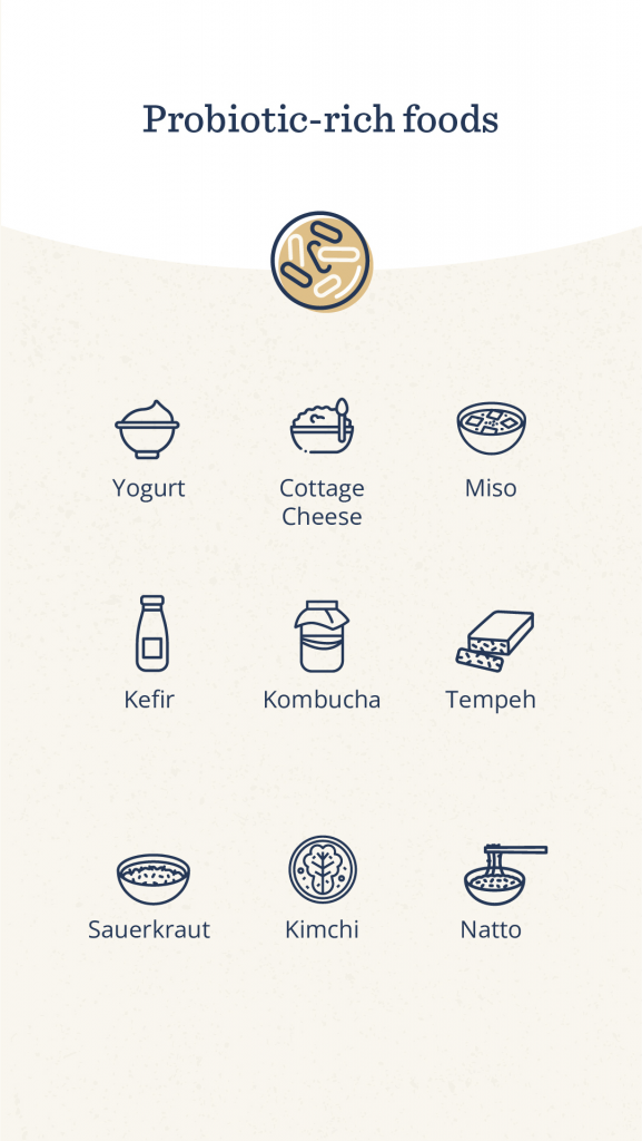 Everyone’s microbiome is different due to genetics, environment and diet. Taking a probiotic supplement or regularly eating probiotic-rich foods can help promote good bacteria and eliminate the bad ones. Foods that contain probiotics include: