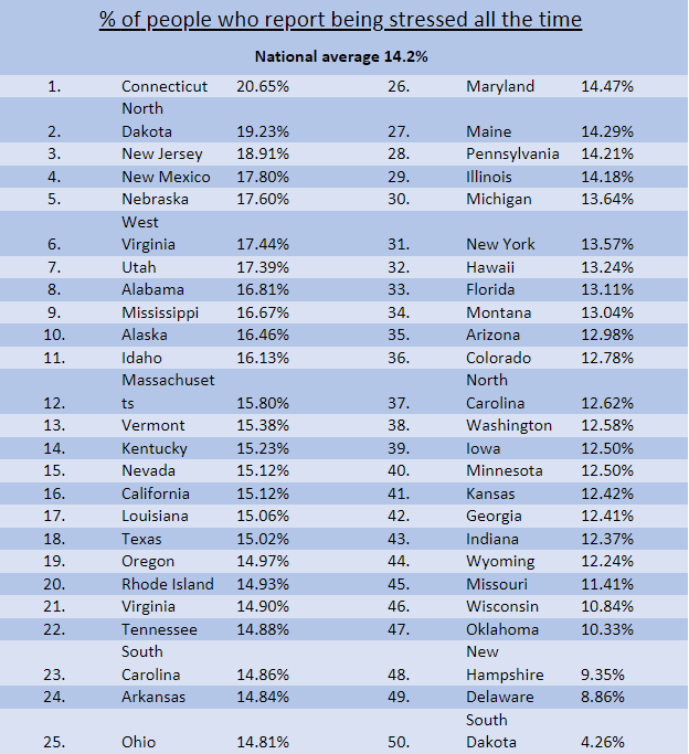 Most stressed-out states