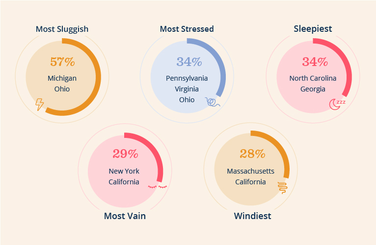 #5 The Windiest States = 28% of California and Massachusetts survey takers listed digestion as a top focus